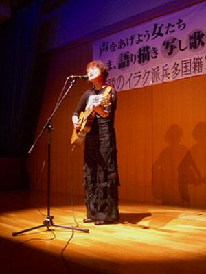 すごい顔ぶれ! 26日、日曜日、 声をあげよう女の会の主催で、イラク派兵反対「第二回表現者はリレーする。いま、語り描き写し歌い舞うとき」を開催しました。雨のなか文京区の不忍通りふれあい館には200名の人でいっぱい。前回も同様でしたが、それぞれの表現者が、それぞれの方法でイラク派兵反対を表現しました。 まったくの司会なしで、一個人として自らが名乗る方式で以下の順で進めました。 1、ビデオレター (前回参加した若者が、街に出て若者にインタビューする映像) 2、マドモアゼル・シネマ (リリーマルレーンなどの音楽による舞踊) 3、渡辺ゆき (昼間は法律事務所につとめながらアメージンググレイス、他を歌う) 4、渡辺一枝(会の呼びかけ人代表で、こうした会をするにいたった経緯を私の名前を出しながら挨拶) 5、澤地久枝(一枝さんに呼びかけられ、体調が万全ではないのに急遽特別参加) 6、馬場明子(ビデオスクリーンとお話しで訴え) 7、神田香織(お話しと講談「はだしのゲン」) 8、新劇人会議(若手演劇人のユニークなパフォーマンス) 9、新聞記者の明珍美紀さんと航空労組委員長の内田妙子さんのトーク 10、仲内節子(一人からはじめたイラク派兵反対・9条まもれ!の意見広告を毎日新聞に掲載) 11、平野レミ(たのしいおしゃべりと歌で人が死ぬのはイヤ!と) 12、石坂 啓(漫画同様、切れ味鋭いお話しで2回目の登場) 13、横井久美子(「太陽の旗」をギターで初めて歌う。その後「里の秋」を会場と一緒に) 14、和田隆子(事務局としての挨拶) と、2時間で多彩なすごい顔ぶれが発言しました。最後にロビーにイラクの写真を展示してくださった郡山総一郎さんもマイクを持って挨拶。それぞれが、本当に素晴らしい発言、表現、パフォーマンスでしたが、圧巻はやはり澤地久枝さんでした。 心臓にペースメーカーを入れられ超多忙の中参加してくださって、「今まで私たちの国が日本でも外国でも戦争の名のもとに一人の命を奪っていないのは、憲法9条があったからです」「改憲の声の高まるなか私たちは愚痴をいっている場合じゃない」「有名人を呼んできてたくさん集まって終わりという集会はもうやめましょう」「名もない無名の人が、一人から一人へ伝えていくのです」など、「私たちにはもう時間がありません」という言葉どおり、強い声で、短時間で、すごい迫力で感動の渦を会場に巻き起しました。 私は、その日、三重県の松阪に行くため、二次回に出られず、澤地さんと途中までご一緒しました。私は、「お体が丈夫でないのに、なぜ、あんなに早く、パワフルに話すことができるのですか」と聞きました。「だって与えられた時間が短くていいたいことがいっぱいあったからよ」と、いわれました。まさにその通りでたくさんの出演者でそれぞれが短かい持ち時間で申し訳なかったのですが、それにしても、強い声の持ち主で、感動しました。私は、澤地さんとは、初めてでしたが、お別れするとき「あなたもどうぞお気をつけて」といわれて、その優しい言葉に本当に大ファンになりました。 私たちは、こうした会をするのに1回目も2回目もある「意図」があり、成功したのではないかと、思っています。それは、「混じり合う集会」という「意図」です。参加者も出演者も。どこかの組織だけでなくいろんな団体、個人が。また、著名人の講演だけでなく、市民運動をしている人が、名もない普通の個人が、一緒に手をつなぐ場をつくることです。「混じる」ことで「分かち合い」、そして「学びあい」「伝えあう」ことができるのだと思います。もう一つこの会での私の喜びは、音楽(芸能、芸術)が、よく言われる「集会のアトラクション」ではなく、講演(話し、挨拶)と同等に、主張し力を持つことができる集会として実現したことです。前回、私は「革命的な集会」と名づけましたが、今の日本のいろんな集会の創り方のなかでは本当に「革命的な集会」といってもいいと思います。いつも同じような人が中心にならないようにということも、一枝さんたちと話しています。また、半年後に、あたらなメンバーで集会ができたら嬉しいです。自衛隊が撤退するまでは!(写真は前回の出演者大木晴子さん撮影) 横井久美子 2004年9月30日 |