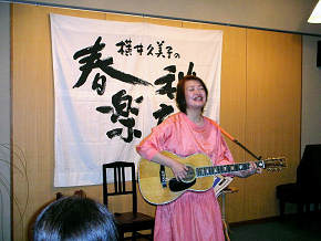 | おしゃれな春秋楽座 昨日は、「杉並かん芸館30人組」の主催で234回目の春秋楽座。といっても大瀧安良さんが、展覧会の会期中に楽座を開催して下さったのです。 大瀧安良さんは、サインペンと水彩で主に杉並の風景を書かれている。「いつも目にしていながら、でも、立ち止まってみることのない風景」が描かれているその絵は、とても繊細で暖かい。描かれた一軒の家から、そこで日々の暮らしを紡いでいる人の姿が見えるような、また、私たちはこういう素朴な暮らしを失ってはいけないよね、という声が聞こえてきそうな、広がりのある絵を描かれている。私もソング&エッセイ「歌って愛して」を出版する時、私の家を描いていただいた。(63ページ) 昨日、東京は大雪の悪天候。半分くらいの参加者になるのではとの私の勝手な予想にも関わらず、予定していた方はほとんどいらしたそうだ。これも大瀧さんの人柄のせいと感心。会場がまたステキな設計でおしゃれ。住宅地の中に小さなギャラリーと別にグランドピアノを備えたホールがあり、オーナーのこだわりが感じられる。その日は、カーブした窓から木に積もった雪の花の景色が素晴らしかった。 今回は、男性が組長ということもあり、いつもより男性が目立った。いつもコンサートが行われている場所のせいか、お客さまがシーンとしてすごい集中力。私の勝手気ままなおしゃべりも反応があるのか無いのか、ちょっと模索しながらの演奏。休憩をはさんで2部あたりから雰囲気がやわらかくなってきた。床に絨毯がひいてはあったが、響きのいいホールで、2回目をいうこともあり、私は、歌いやすかった。 楽座が終了し、その場でワインパーティ。チーズやフランスパン、おにぎり、輝き隊の中沢さん手作りのパンがテーブルに。このパーティがとてもとても楽しかった。輝き隊の会長の藤沢貞子さんの乾杯にはじまり、大瀧さんの小学校、中学校、高校、大学の友人たち。大瀧さんは、ナチスに破壊されたチェコのリゼッツエの子ども像建立運動を応援されているが、そのチェコ関係の方々。職場の組合である公共一般の方々。そして、輝き隊の方々など。すごく多彩な方たちがパーティでそれぞれ話された。 チェコの関係者の方には、2003年7月にチェコを代表する歌手マルタ・クビショワさんに会ったことを思い出し、早速ソング&エッセイ「歌って愛して」に掲載されている写真を見せたりした。私はその雰囲気がステキなので、ギターを引っ張り出して、「飯場女の歌」っを歌った。すると、大瀧さんの友人の弁護士が、芦別事件について説明。「夫へのバラード」を歌うと、またじん肺訴訟について説明。そんな雰囲気がとても愉快。みんなで「歌って愛して」を歌ってすべて終了。 大瀧さんの主催された楽座は、場所といい、集まった方といい、そのお話の内容といい、ワインやシンプルで味のいいべ物といい、サロンのような雰囲気でおしゃれな楽座でした。雪道を転ばないようにヨカッタネ、ヨカッタネといいながら、私たち輝き隊は帰ったのでした。 横井久美子 2006年1月22日 |